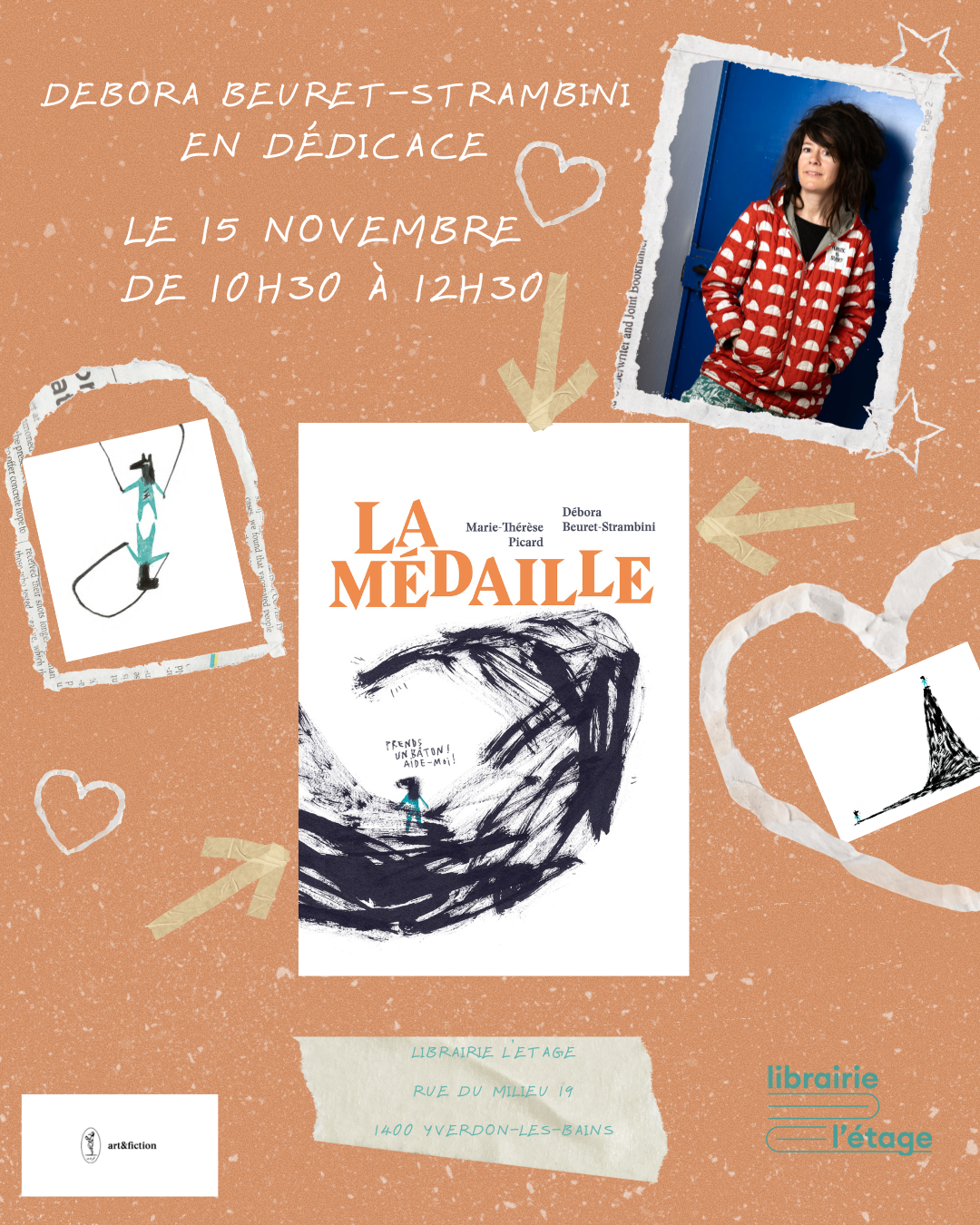 Nous recevons avec grande joie l’illustratrice yverdonnoise Débora Beuret-Strambini pour une dédicace de son album La Médaille le 15 novembre de 10h30 à 12h30. Trois jours après son passage à la librairie se déroulera au Théâtre Bennon Besson l’adaptation de cet ouvrage mis en scène par Marielle Pinsard. Sur scène vous trouverez 6 comédien.ne.s, dont Débora, qui interprèteront le conte poétique de l’autrice guyanais...